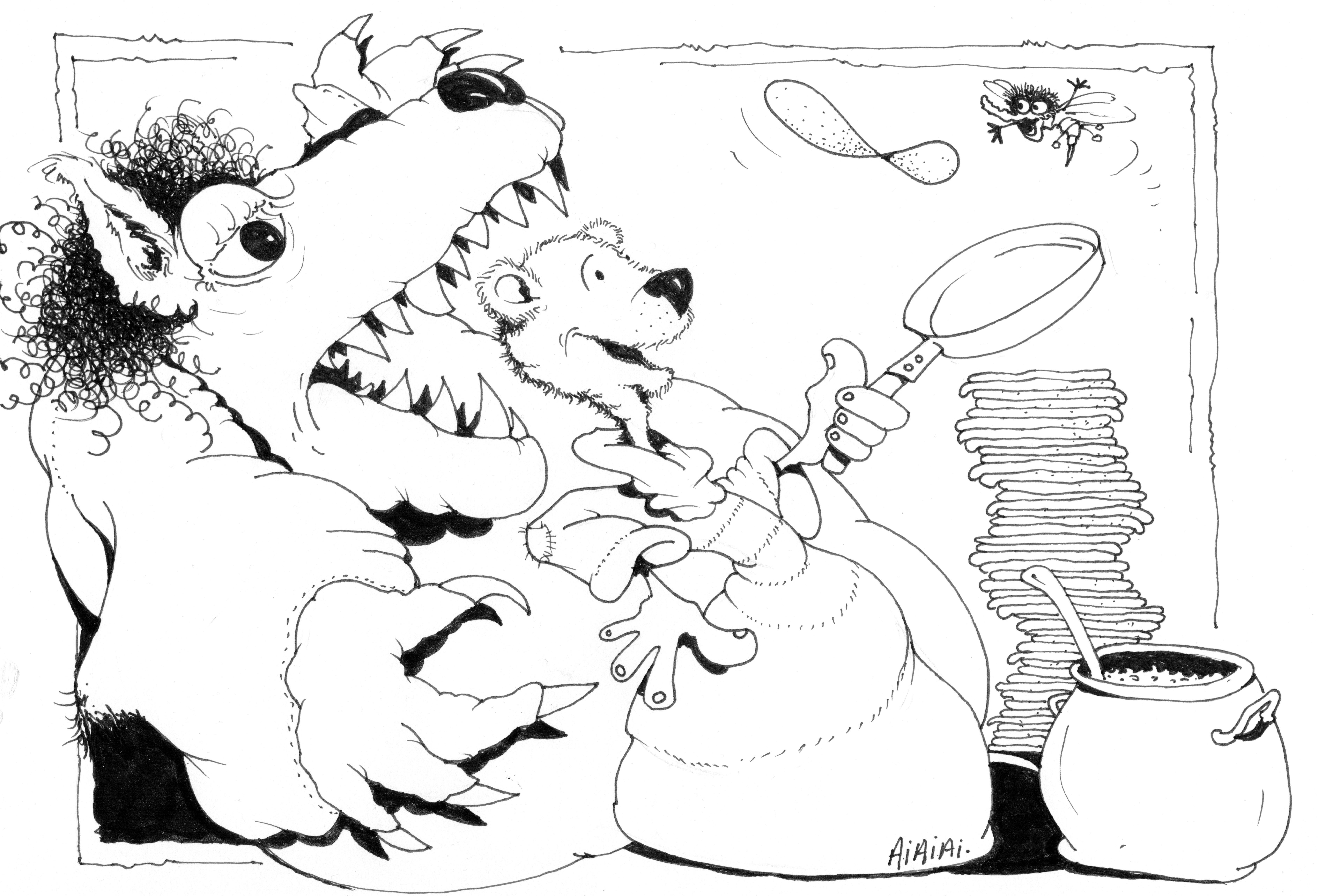 Die avond is er alleen 1 ei in het huis van Beer en Tijger.