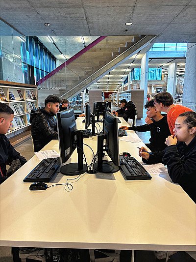 Rondleiding Middelbare scholieren ontdekken alle hoeken van de bib.